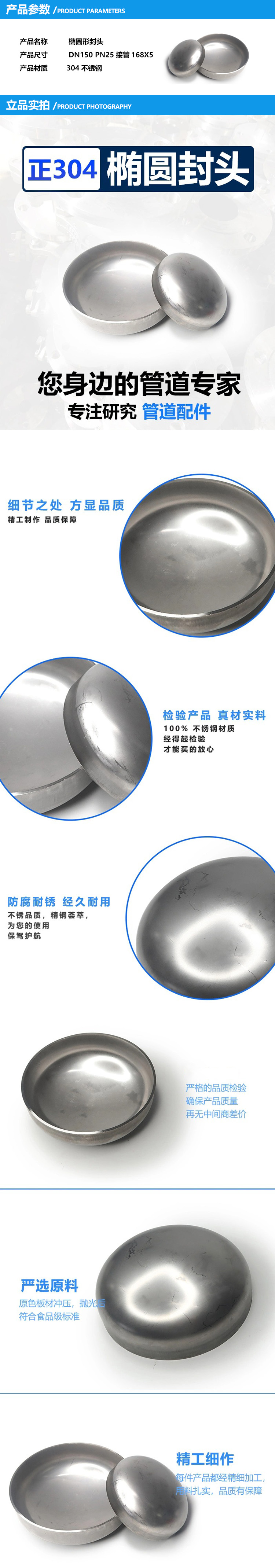 圣天(ST) 304不锈钢椭圆形封头 DN150 单位:件