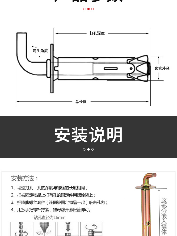 ZHBOZ 热水器挂钩膨胀螺丝 M10*100mm 孔16mm 单位:个