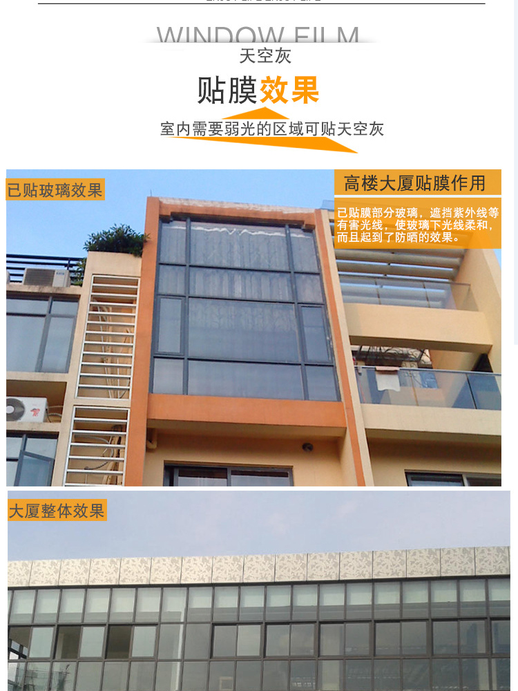 力安 双向透视隔热膜 1300*1000mm 天空灰 单位:件