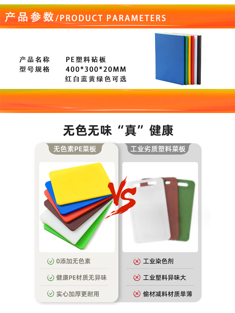香悠悠 PE塑料砧板 400*300*20mm 红白蓝黄绿色可选 单位:块