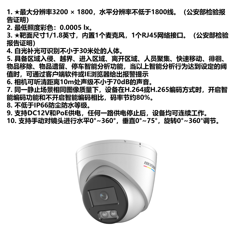 海康威视 半球摄像头 DS-2CD2367WYZ-CL 单位:台