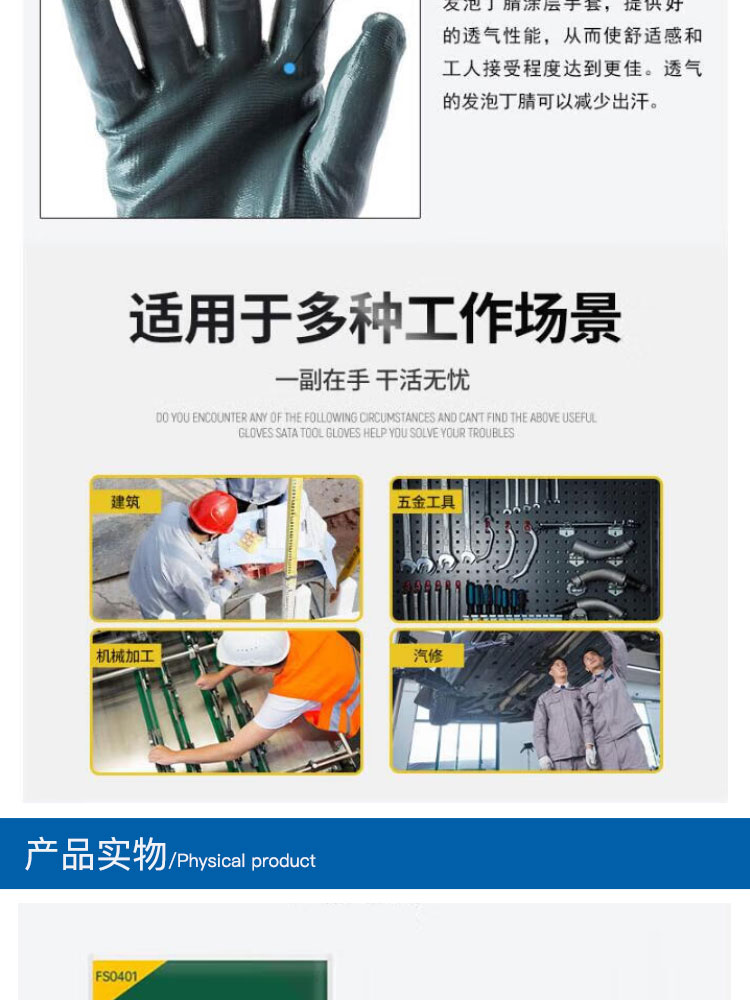 SATA 7"丁腈手套 FS0401 掌浸 单位:双