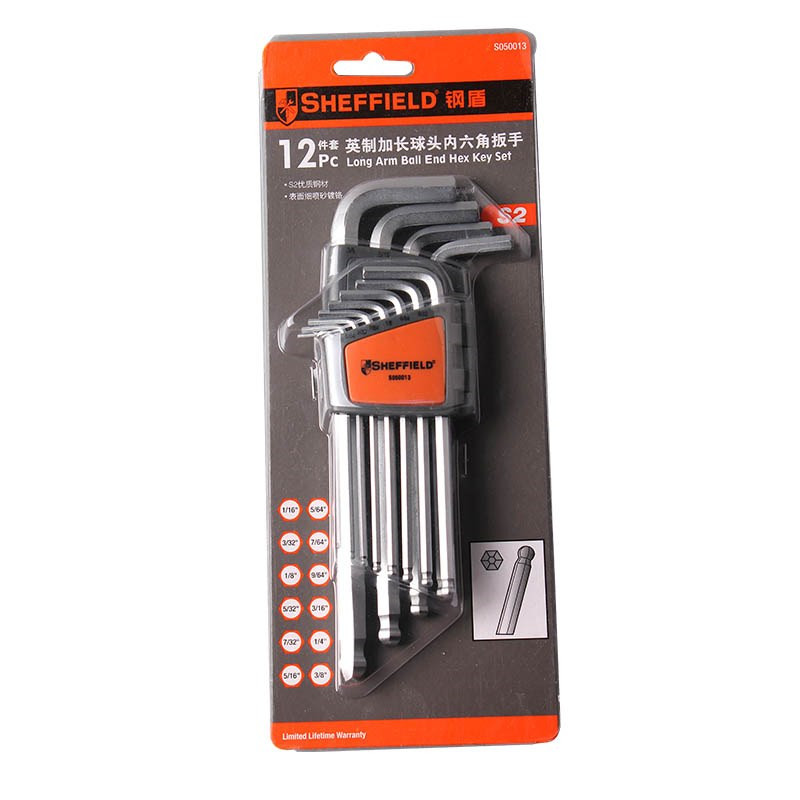 钢盾S050014 12件套英制加长内六角扳手组套