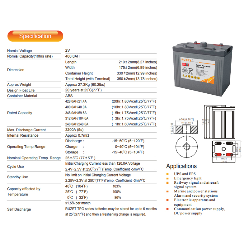 RUZET 充电电池 2TPG400H-2V-400AH 单位:台