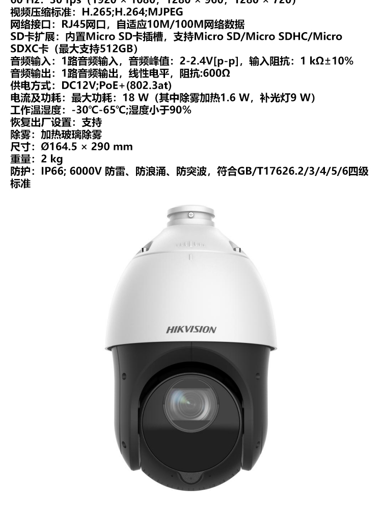 海康威视 球机摄像头 DS-2DE4223YZ-CDEF 单位:台