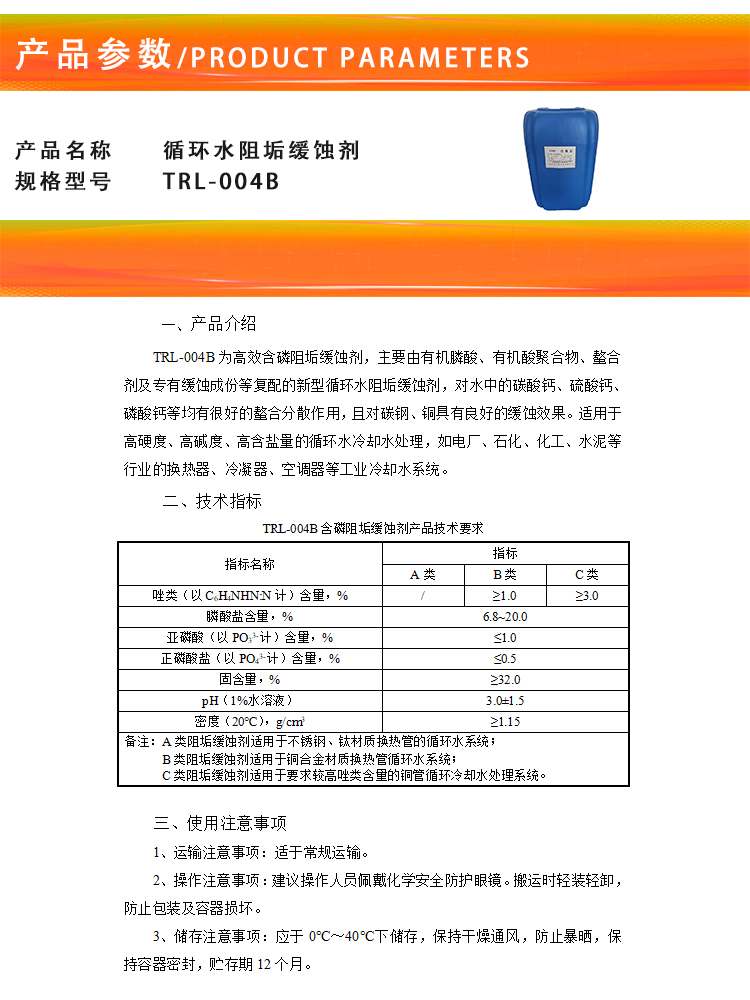 西热化学 循环水阻垢缓蚀剂 TRL-004B 单位:瓶