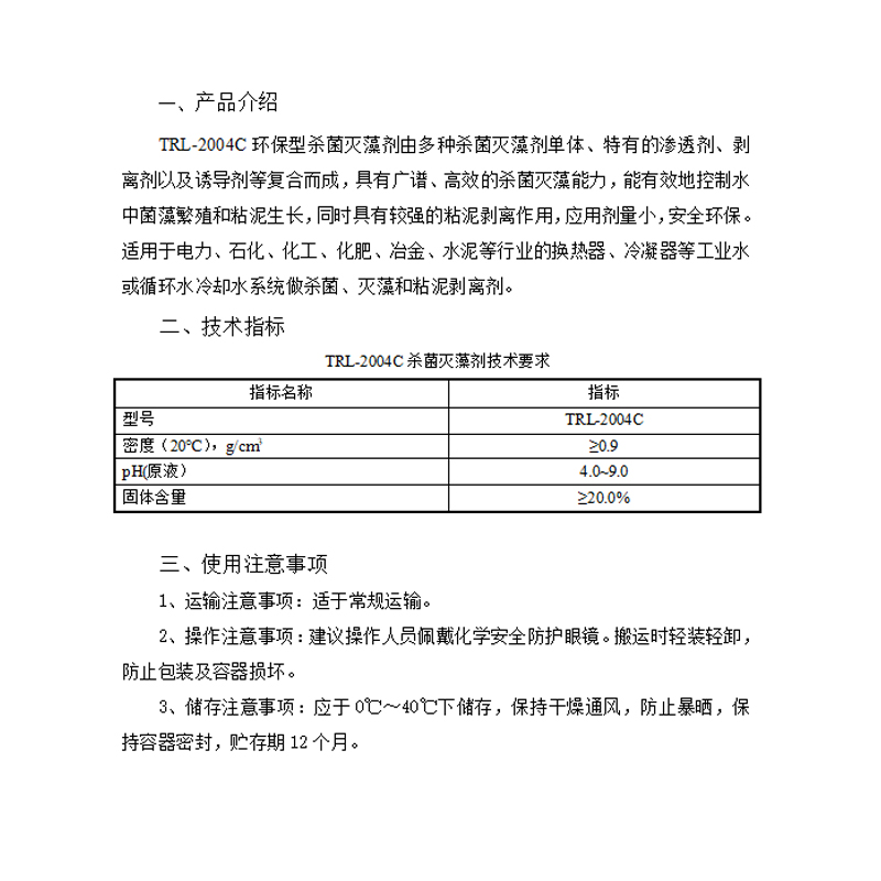 西热化学 环保型杀菌剂 TRL-2004C 单位:瓶