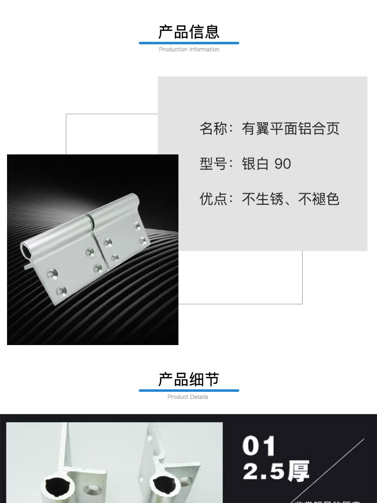 千鉴思 有翼平面铝合页 银白 90 单位:副