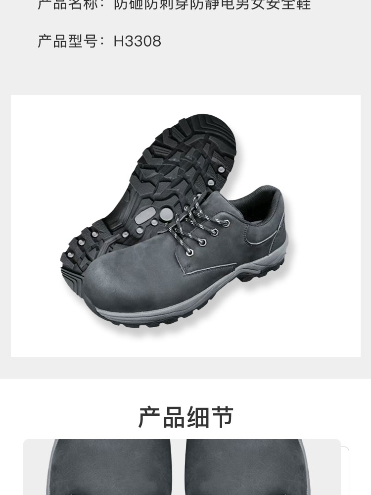 盾王 防砸防刺穿防静电男女安全鞋 H3308 单位:双