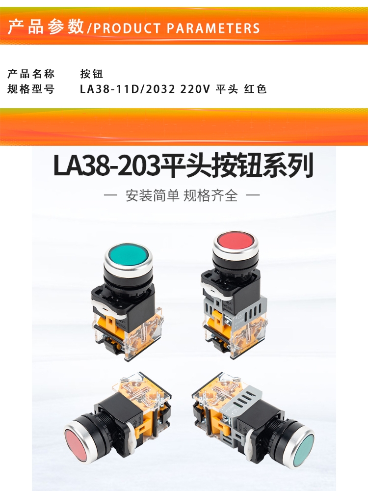 长江电器 按钮 LA38-11D/2032 220V 平头 红色 单位:个