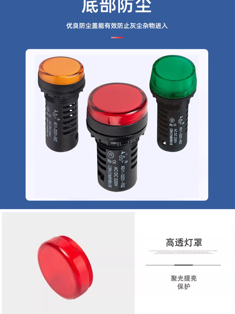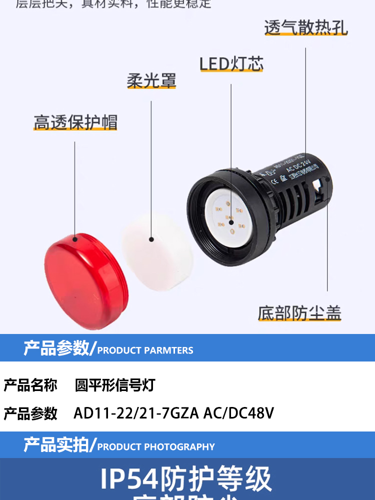 长江电器 圆平形信号灯 AD11-22/21-7GZA AC/DC48V 红色 单位:个