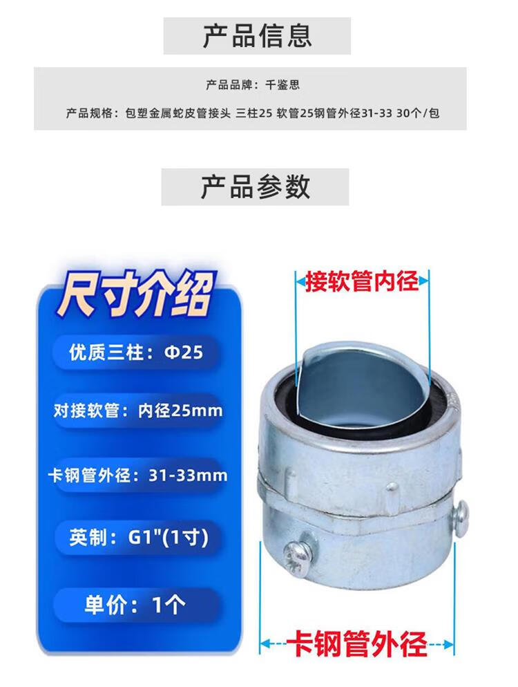 千鉴思 包塑金属蛇皮管接头 三柱25 软管25钢管外径31-33 30个/包