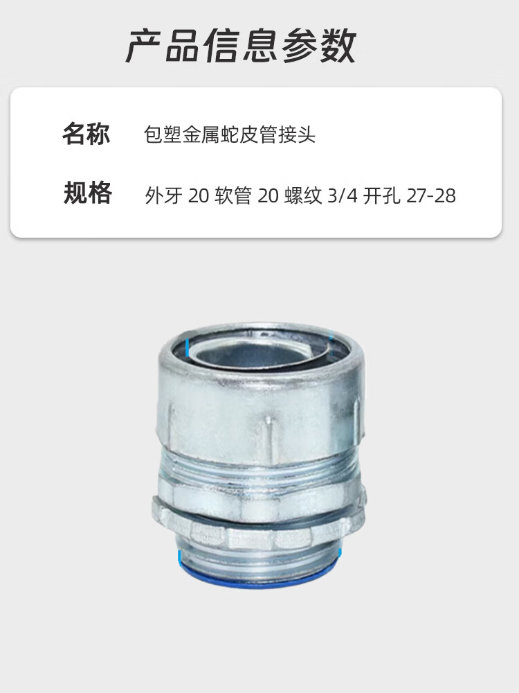 千鉴思 包塑金属蛇皮管接头 外牙20 软管20螺纹3/4开孔27-28 30个/包