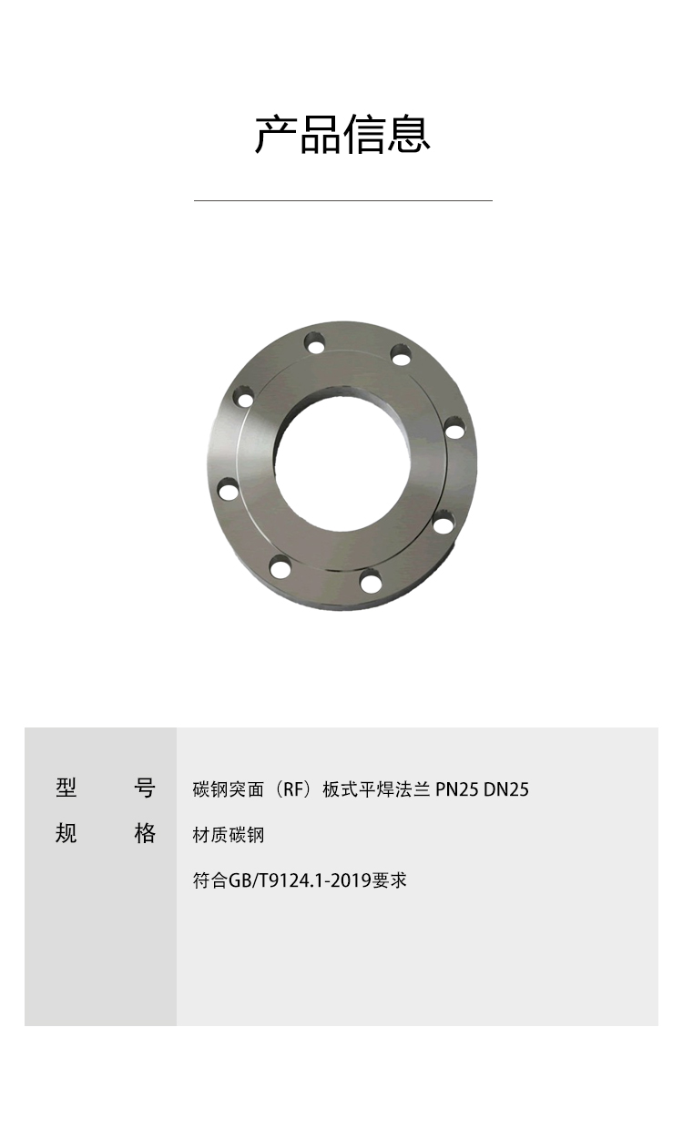 千鉴思 碳钢突面(RF)板式平焊法兰 PN25 DN25