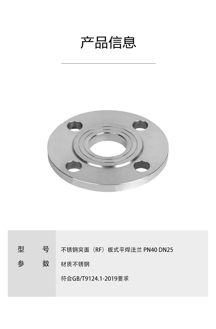 千鉴思 不锈钢突面(RF)板式平焊法兰 PN40 DN25