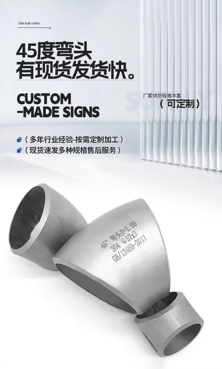千鉴思 45°不锈钢无缝热压弯头 接管φ60.3x3.9 06Cr19Ni10 单位:件