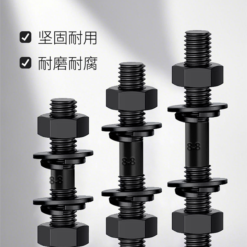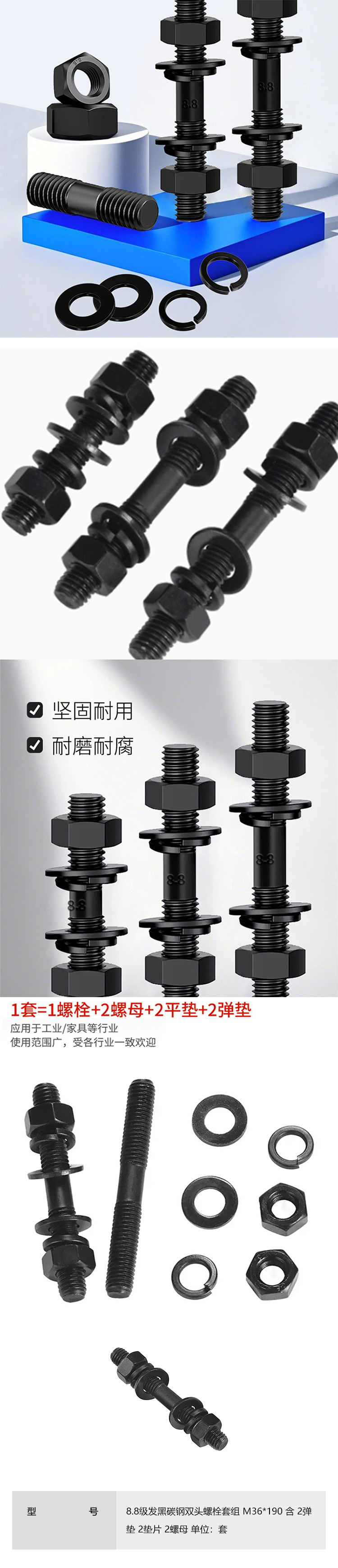 千鉴思 8.8级发黑碳钢双头螺栓套组 M36*190 含 2弹垫 2垫片 2螺母 单位:套