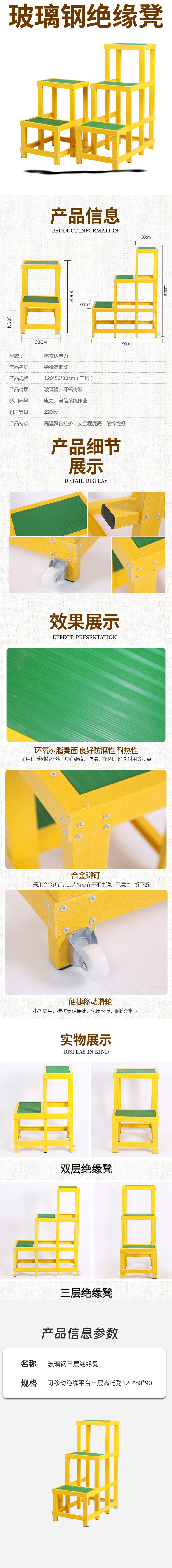 杰安达 玻璃钢三层绝缘凳 可移动绝缘平台三层高低凳 120*50*90 单位:个