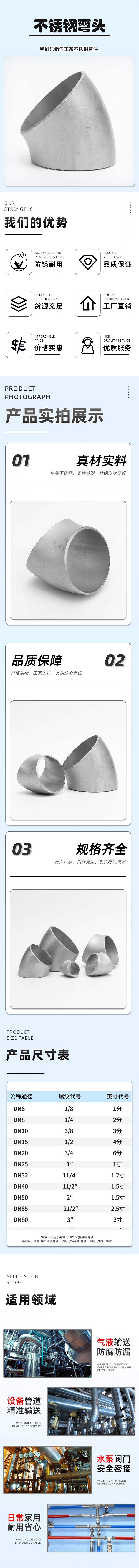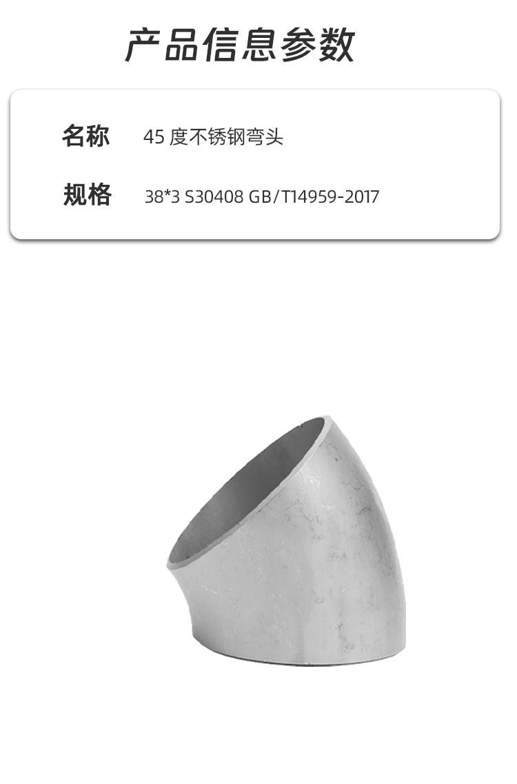 千鉴思 45度不锈钢弯头 38*3 S30408 GB/T14959-2017 单位:个