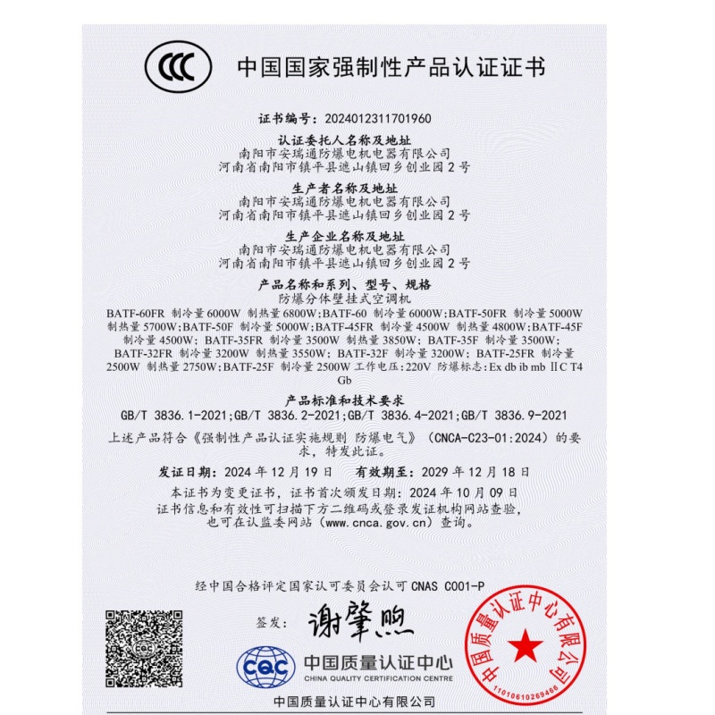 安瑞通 BATF-75FR 防爆冷暖壁挂式分体空调机