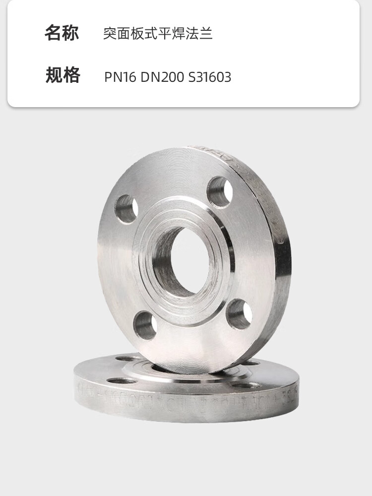 欧格亿 316L突面板式平焊法兰 PN16 DN200 法兰厚度26 HG20592-2009 单位:件