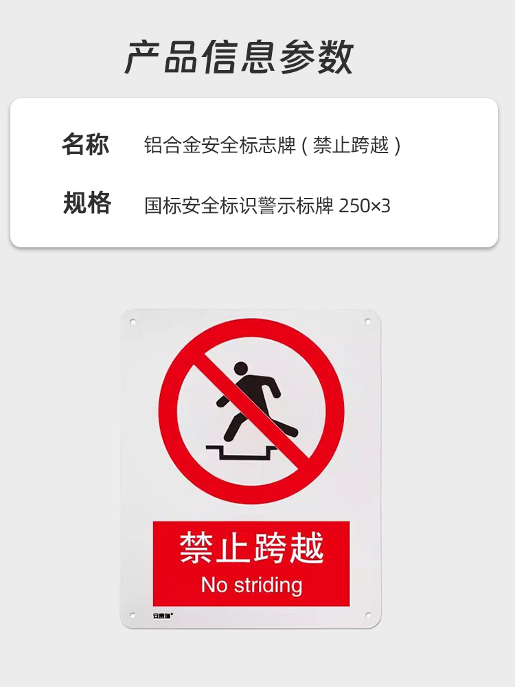 千鉴思 铝合金安全标志牌(禁止跨越)国标安全标识警示标牌250×3