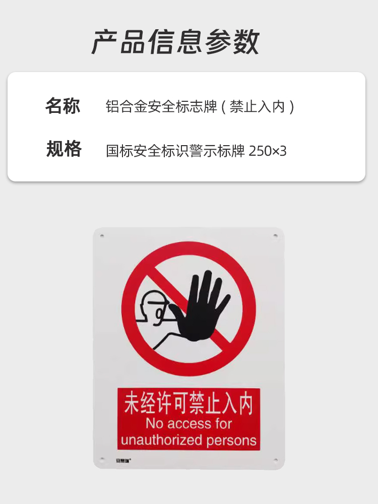 千鉴思 铝合金安全标志牌(禁止入内)国标安全标识警示标牌250×3