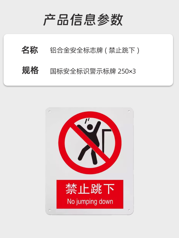 千鉴思 铝合金安全标志牌(禁止跳下)国标安全标识警示标牌250×3