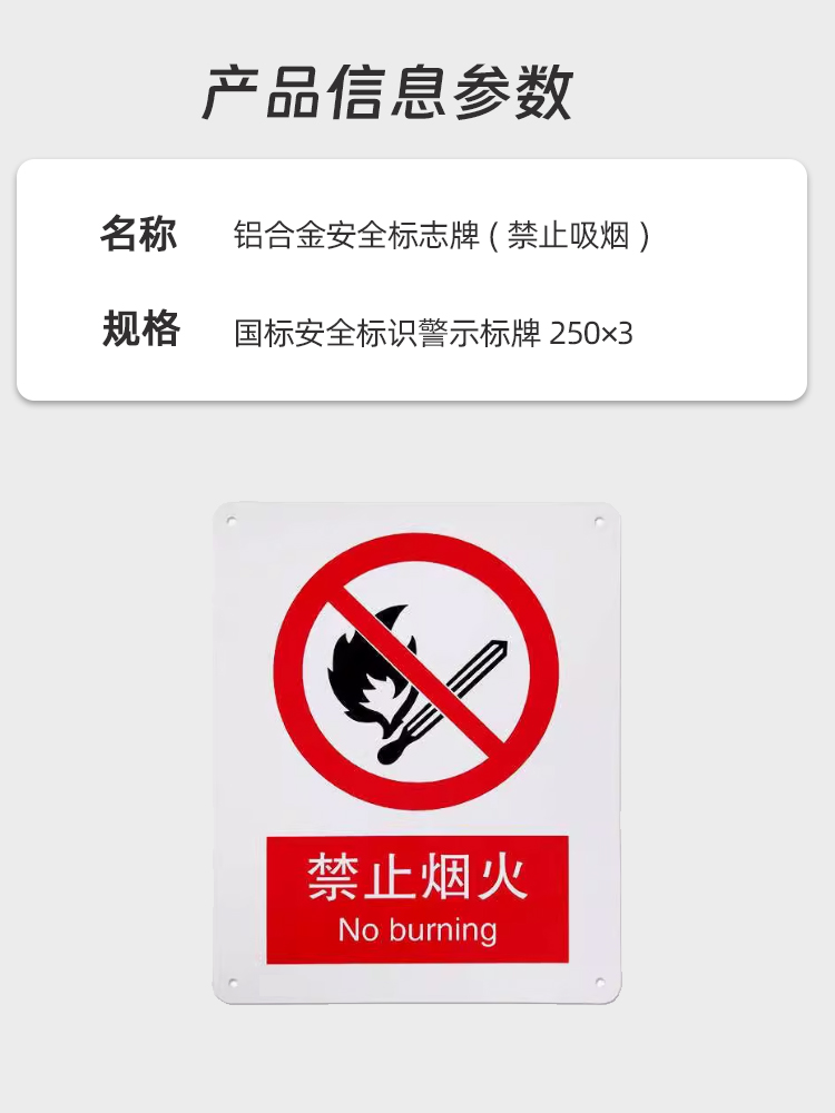 千鉴思 铝合金安全标志牌(禁止吸烟)国标安全标识警示标牌250×3