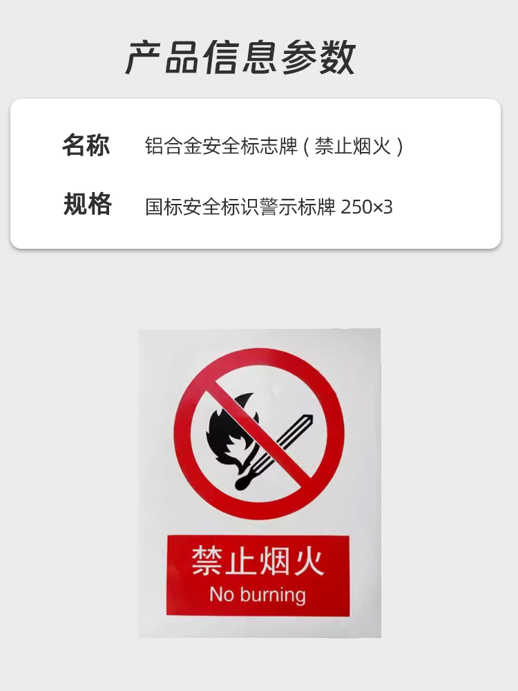 千鉴思 铝合金安全标志牌(禁止烟火)国标安全标识警示标牌250×3