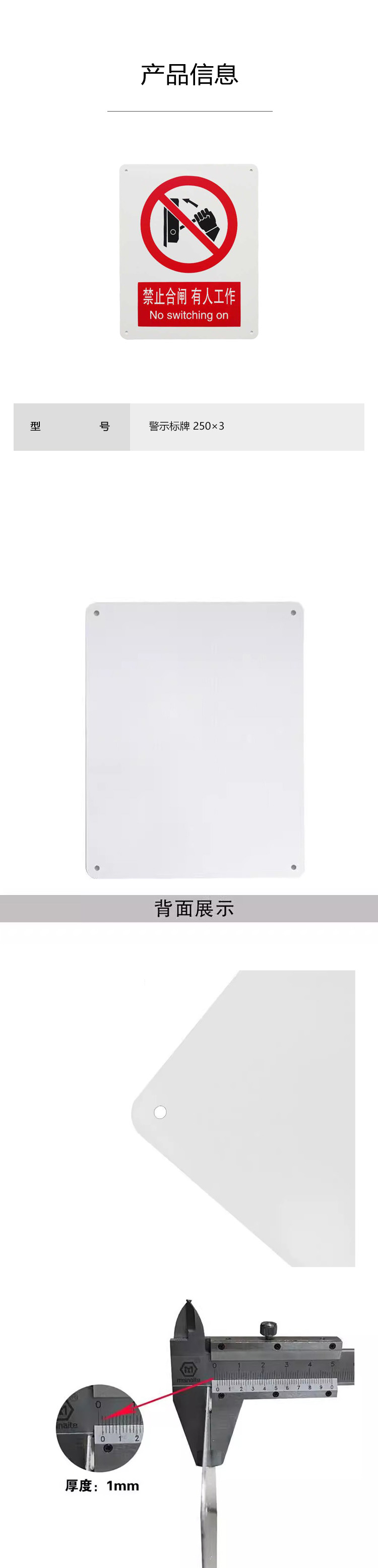 千鉴思 铝合金安全标志牌(禁止合闸有人工作)国标安全标识警示标牌250×3