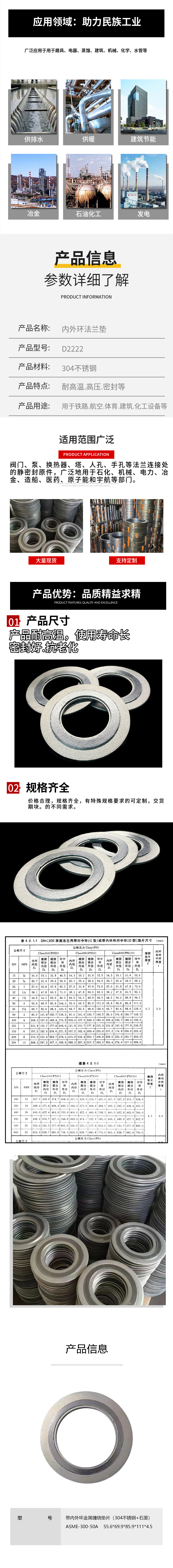 欧格亿 带内外环金属缠绕垫片 603.3*628.7*685.8*774*4.5 304不锈钢+石墨 个