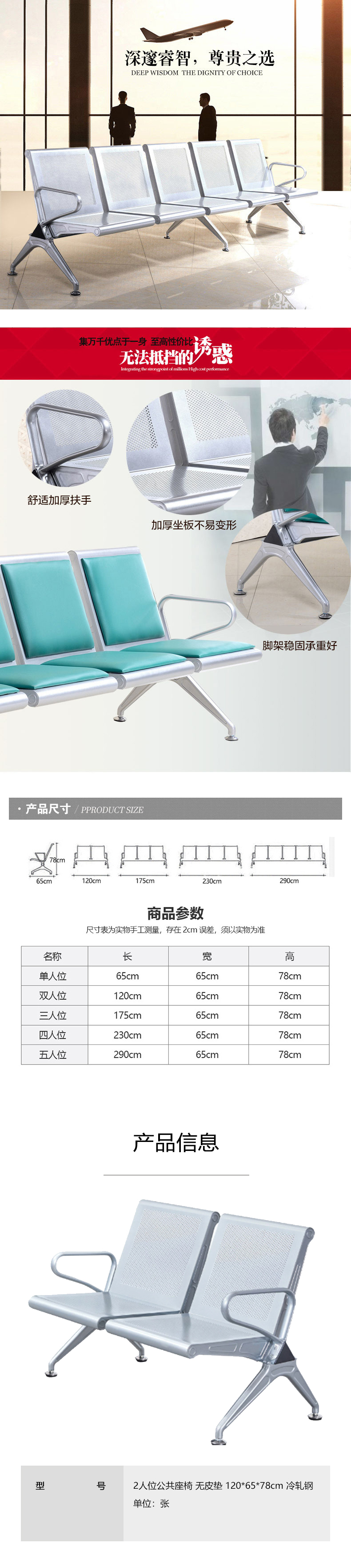 盛誉尚华 2人位公共座椅 无皮垫 120*65*78cm 冷轧钢 单位:张
