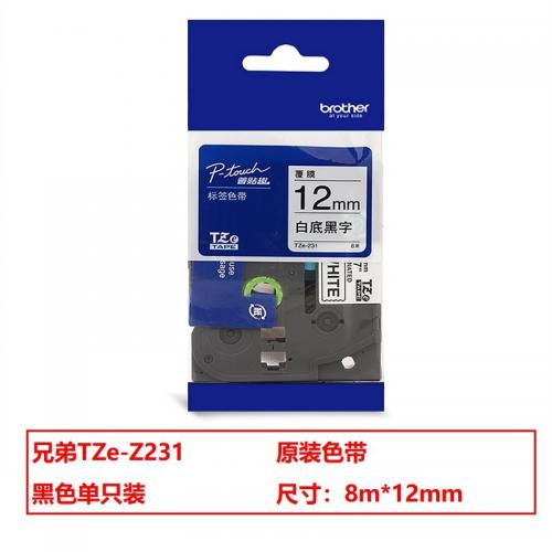 兄弟 TZe-Z231原装色带 白底黑字单支装(适用兄弟PT系列)8m*12mm