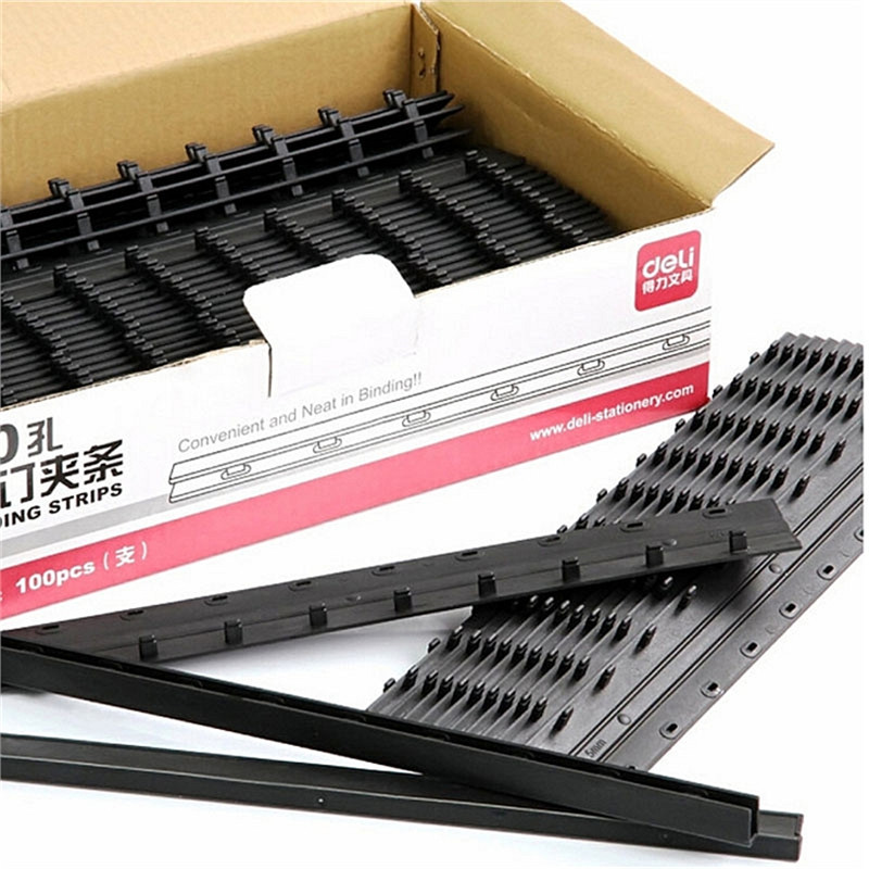 得力 3826 10孔装订夹条 300*7.5mm 100支/盒 黑