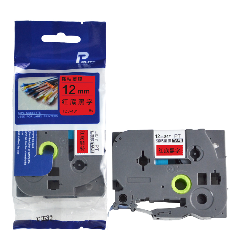 普贴TZ3-431标签打印机色带红底黑字12mm卷