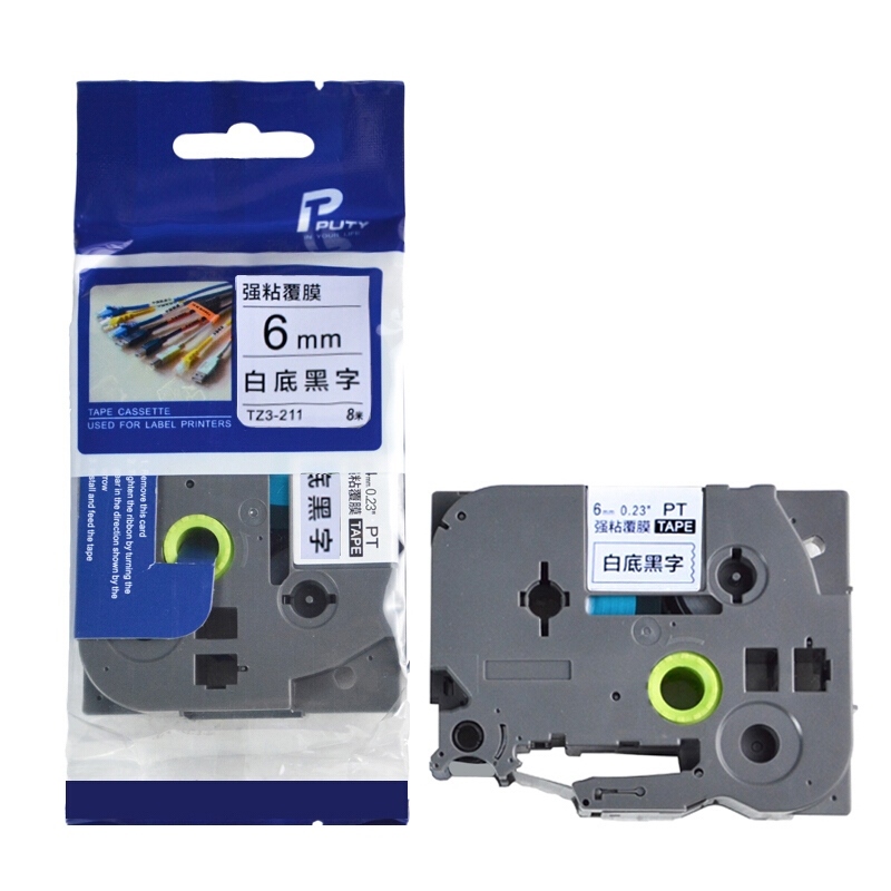 普贴 TZ3-211 6mm*8m 色带 白底黑字