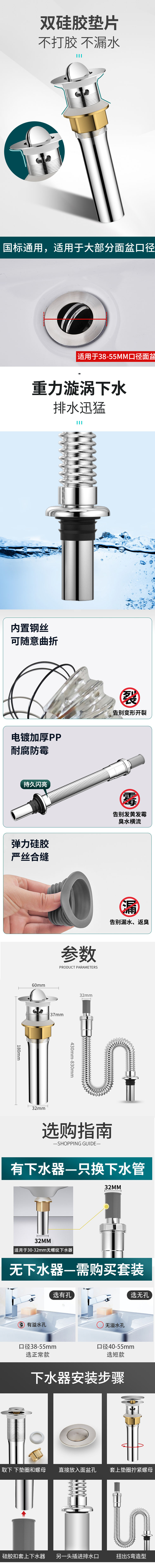 SONM 翻板下水器 翻板款 有孔+翻板+电镀防臭管 适用38-55mm口径面板 单位:套