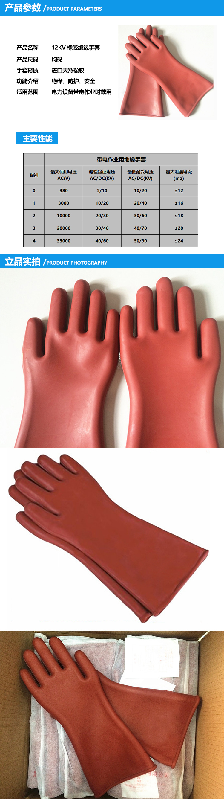 干诚 橡胶绝缘手套 12KV 酒红 单位:副