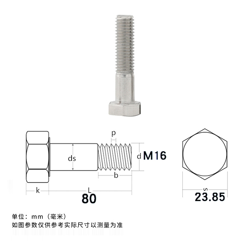SONM 316不锈钢外六角半牙螺栓 M16*80 单位:个