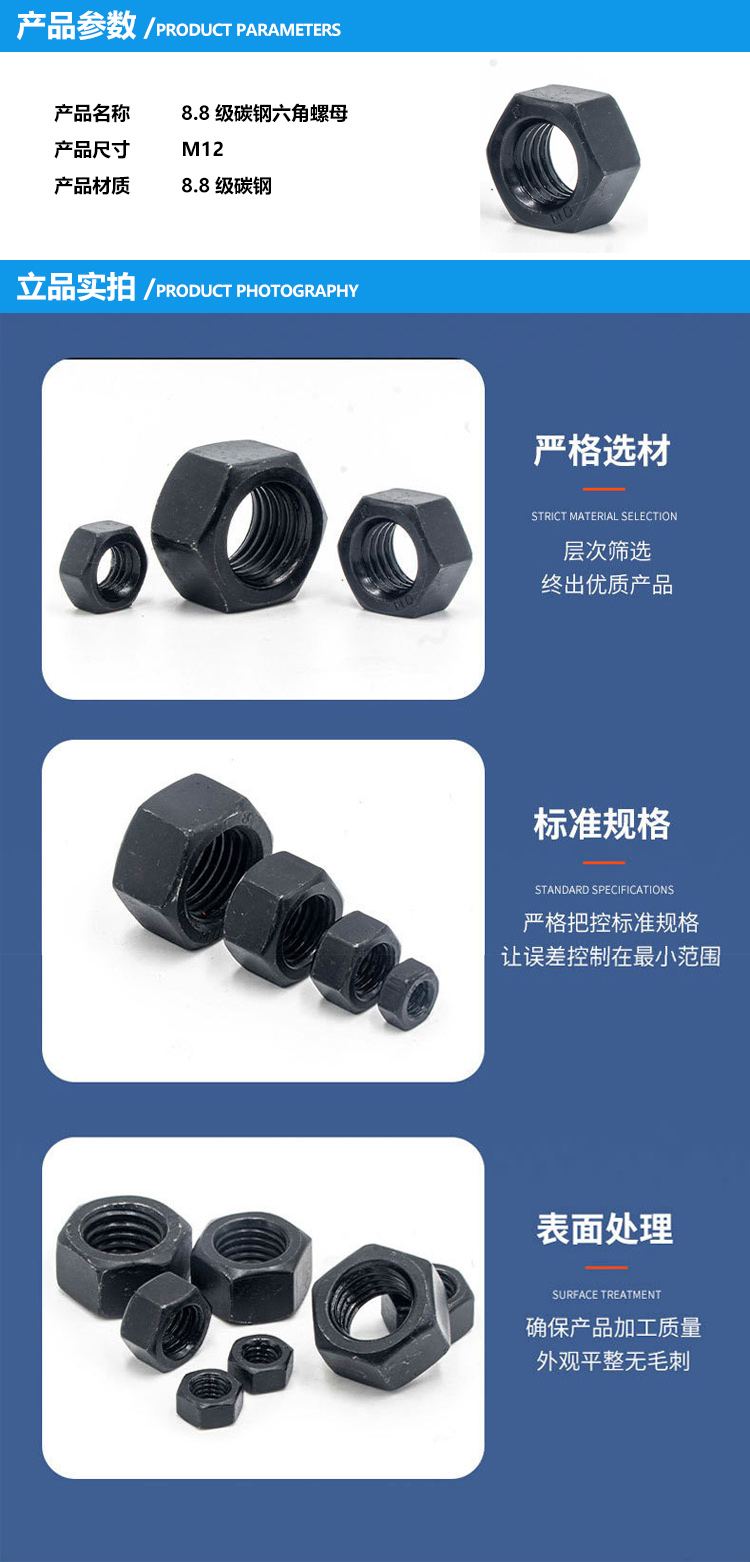 邦澎 8.8级碳钢六角螺母 M12 200个/盒 单位:盒