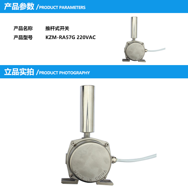NORTHWICK 不锈钢推杆式开关 KZM-RA57G 220VAC 单位:个