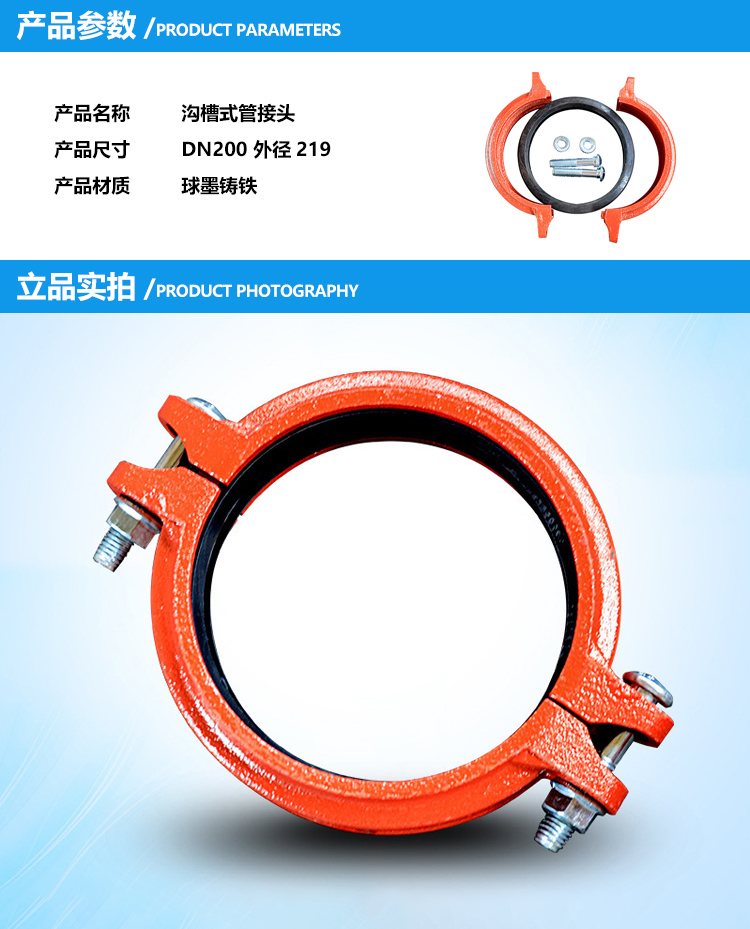 千鉴思 球墨铸铁沟槽式管接头 DN200 外径219 单位:个