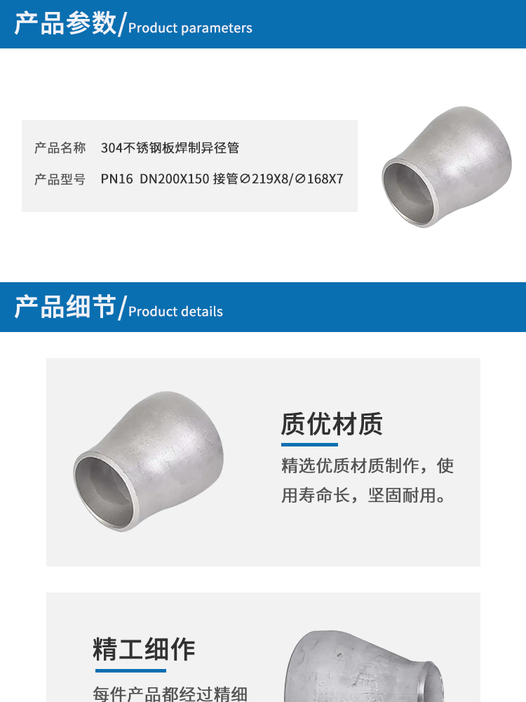 圣天(ST) 304不锈钢钢板焊制异径管 PN16 DN200×150 单位:件